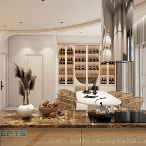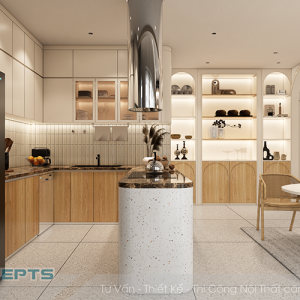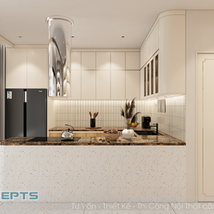 - Tủ bếp dưới được thiết kế theo dáng chữ L với bố cục thông minh thì đây là nơi lý tưởng để sắp xếp các thiết bị nhà bếp, hỗ trợ bạn hiệu quả trong quá trình chuẩn bị bữa ăn, đồng thời giữ cho không gian luôn gọn gàng và ngăn nắp.